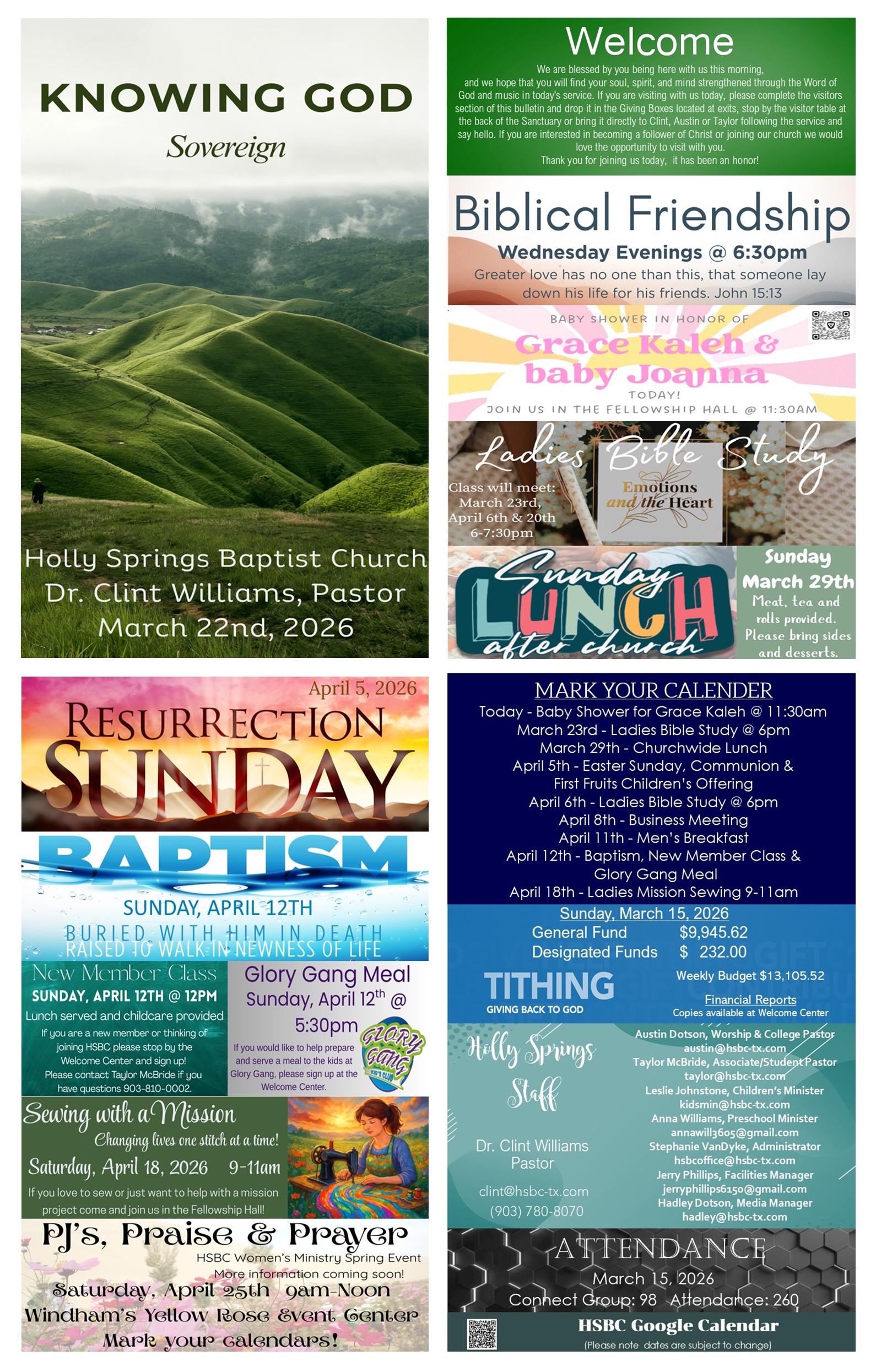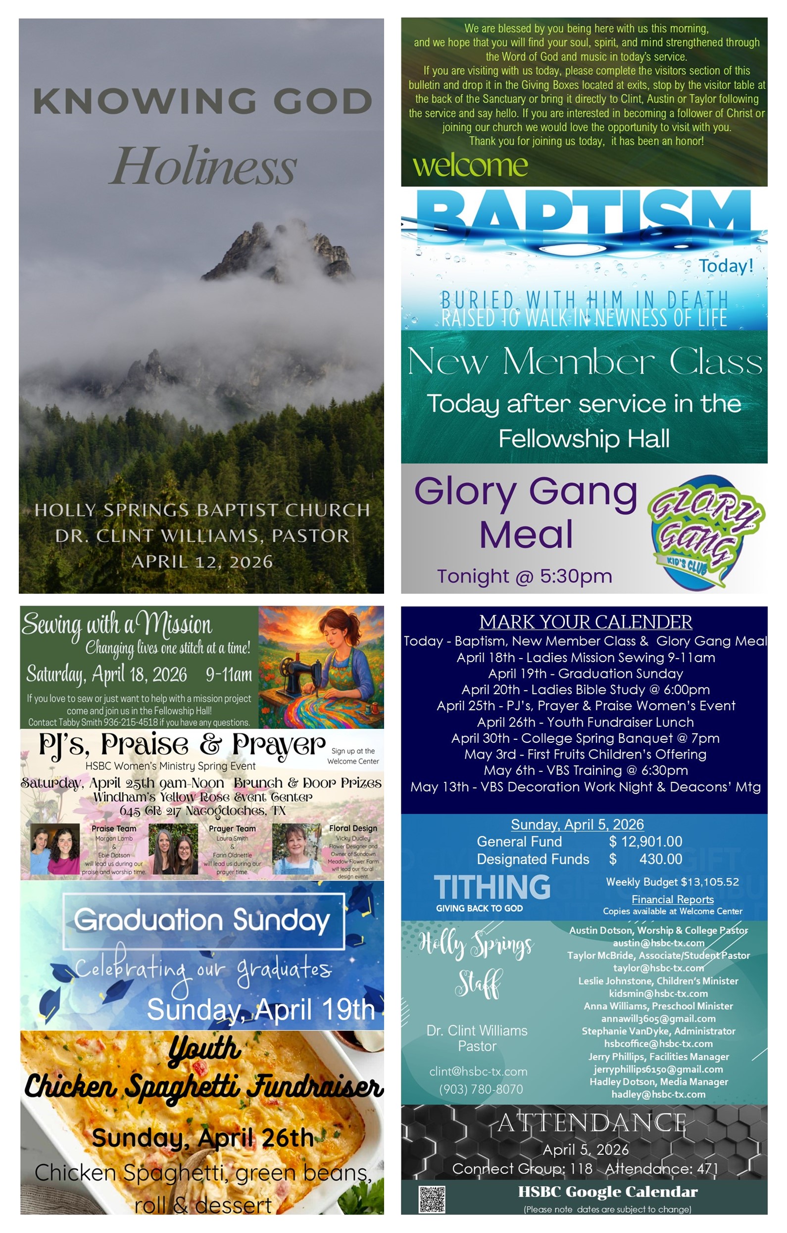 Holly Springs LINKs CHUrch BulletinGive to HSBC Pastors Podcast hSBC SPOTIFY hSBC YouTube Youtube hsbc Facebook hSBC roundedinstagram Instagram Connect CardChurch Calendar
